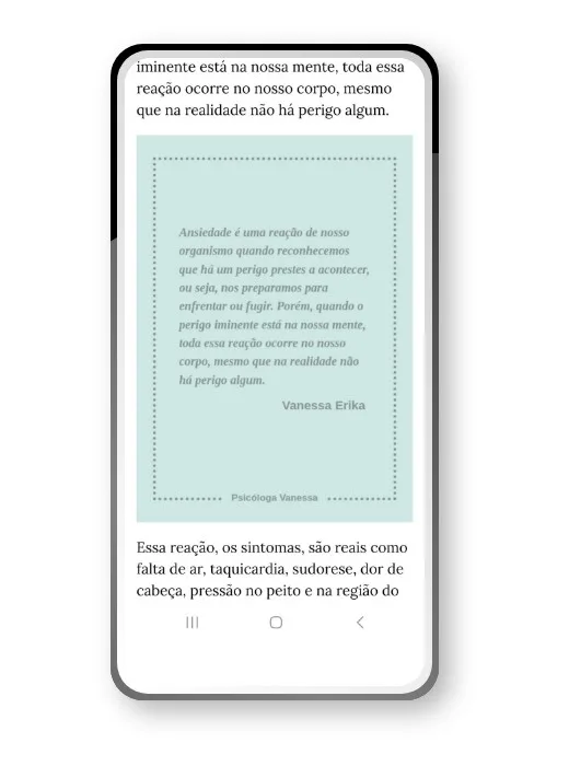 Para você contextualizar o assunto, considere a visualização do artigo abaixo elaborado pela psicóloga Vanessa. Veja que o corpo do artigo inclui um gráfico que destaca parte do texto: