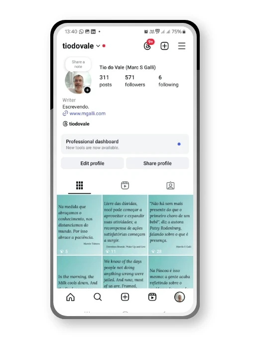 The routine of a writer involves archives ideas. Or to archive in the public space. Marcio knows and enjoys sharing ideas on his Instagram profile - sharing postcards as images is good: