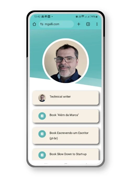 Marcio is an author and already has a Weplex-based "bio links" site, where top links are "Marcio as a technical writer", and the other links links to his manuscripts. He is growing, as a writer: