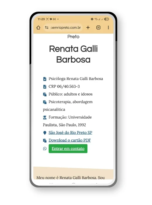 Um dos primeiros projetos é a construção do bio-site profissional. Essa etapa envolve "design e identidade", com o objetivo de criar uma marca. Levamos em consideração, estilo, cores e fotos, sim; mas muito sobre essa fase é o feijão com o arroz. Quem é você? O que você faz? Qual é o seu público? Nossa intenção, nesta fase, é criar/formatar um tipo de ficha técnica desse profissional. Trazer objetividade, o básico, em primeiro lugar. Nome completo, CRP, cidade onde mora, quem atender, etc e etc. Esse momento "bio-site profissional" nos levará a dois resultados mensuráveis, concretos: