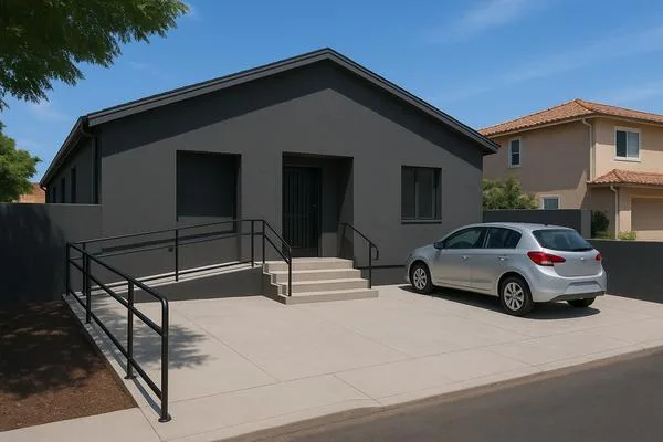 Então podemos e devemos refletir que cada foto só existe para contar uma história. Você pode falar sobre a frente do consultório, sobre como é fácil estacionar, sobre o espaço que existe para estacionar, sobre a rampa de acessibilidade. Observe também sobre o alinhamento da foto. Sim, ela está em perspectiva, ou seja, a casa está angulada e assim traz uma ideia de profundidade que diz mais sobre o espaço. Mas não significa que está desalinhada se você pensar na cabeça (olhos) do observador. Em outras palavras, o rosto do observador está alinhado, de pé, postura ereta, olhando para frente: