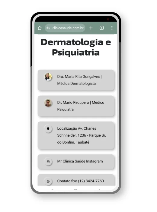 Tanto Mario como Maria Rita estão bem posicionados para a pesquisa "psiquiatra Taubaté". Em 2025 fizemos uma grande mudança onde agora a página do Mario passou para a página oficial, que agora é a clínica MRClínica Saúde Taubaté.